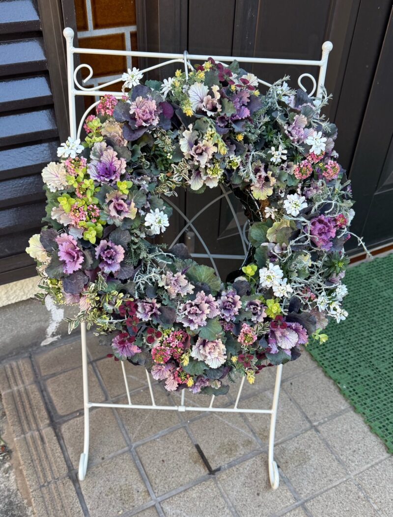 ハボタンを使ったリースは洋風でとても豪華✨。