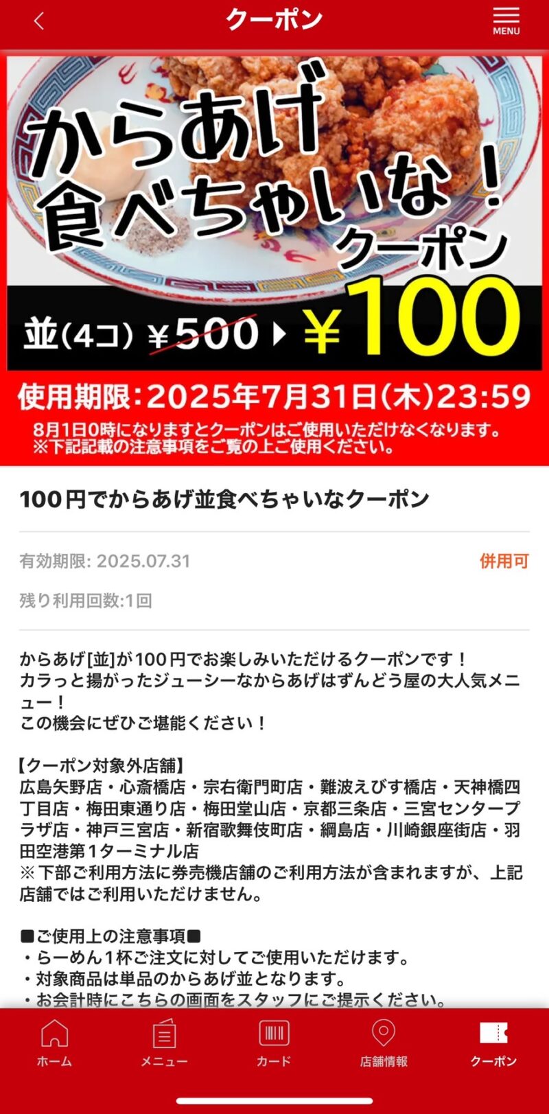 なんと!唐揚げが4個で100円というスマホクーポンを発見❗