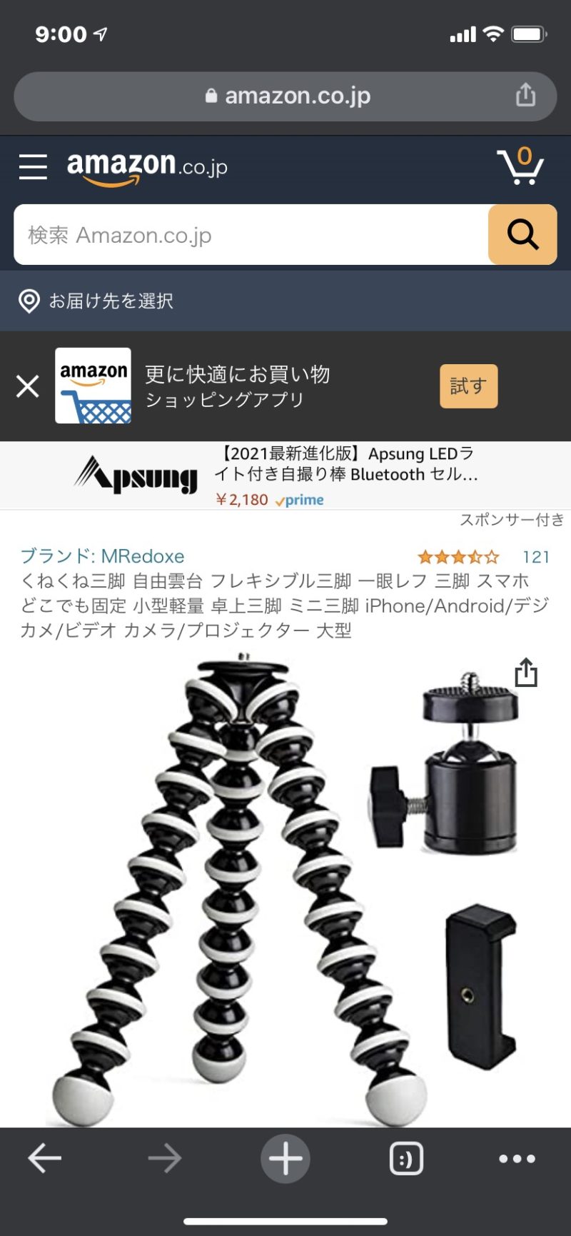 それを卓上サイズの三脚に変えようと思い、ネットでポチしました。(結構考えて選びましたよ。)