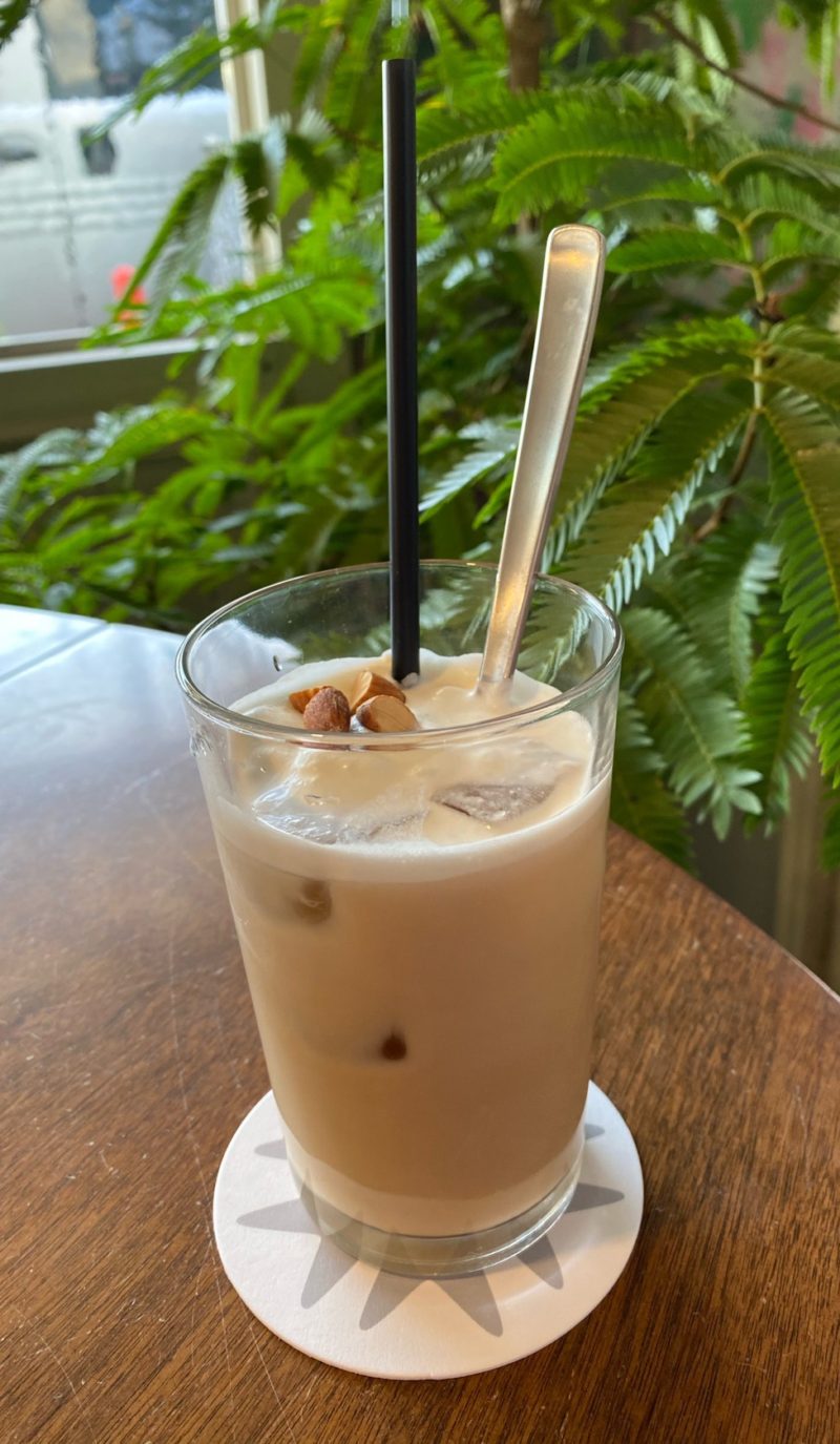 折角なのでお茶を「アイスアーモンドナッツオレ」560円(デザートを注文するとドリンクは100円引き)