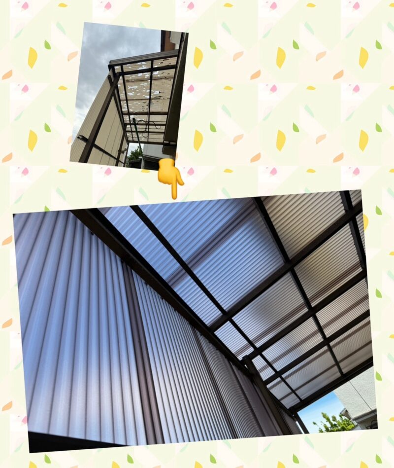 雹被害を受けてその時、樋と裏の波板が破損してしまいました️。