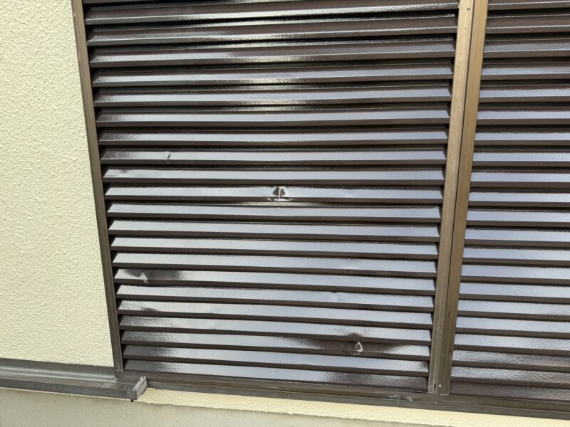 雨戸もペンキを塗ったら、雹被害の痕跡が・・・