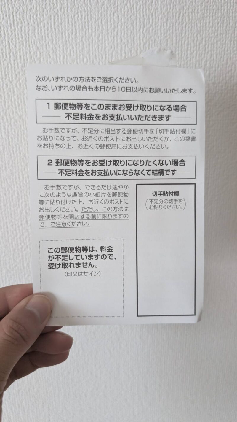 「60円切手を貼って再投函してください」とのお知らせ📩