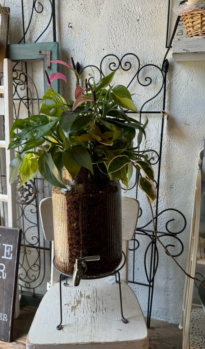 ✨ピンクのアンスリウムが主役!観葉植物ギャザリングのお稽古✨「ラウンドケープ」