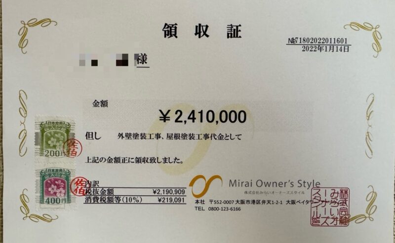 今後の為に領収書を貼り付けておきますね。