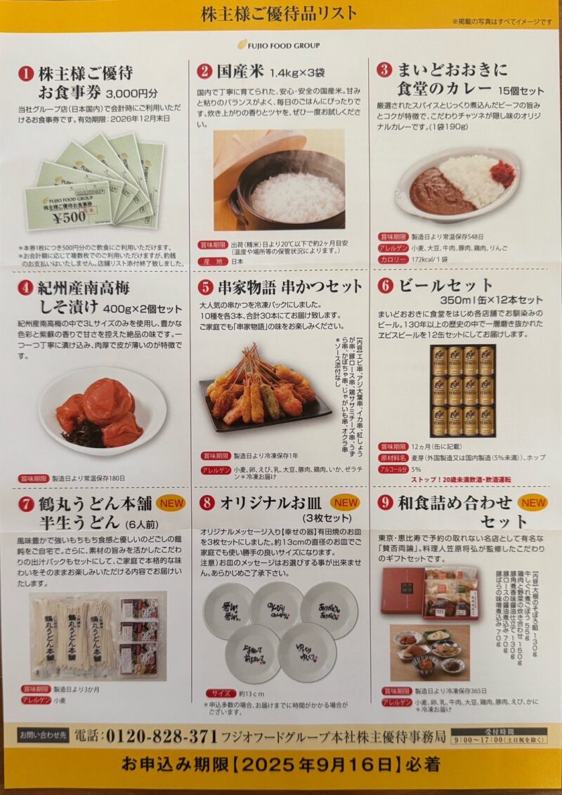 . 🍽️フジオフード株主優待✨お食事券か代替品?📮期限9/16までに忘れず申込を!⏳