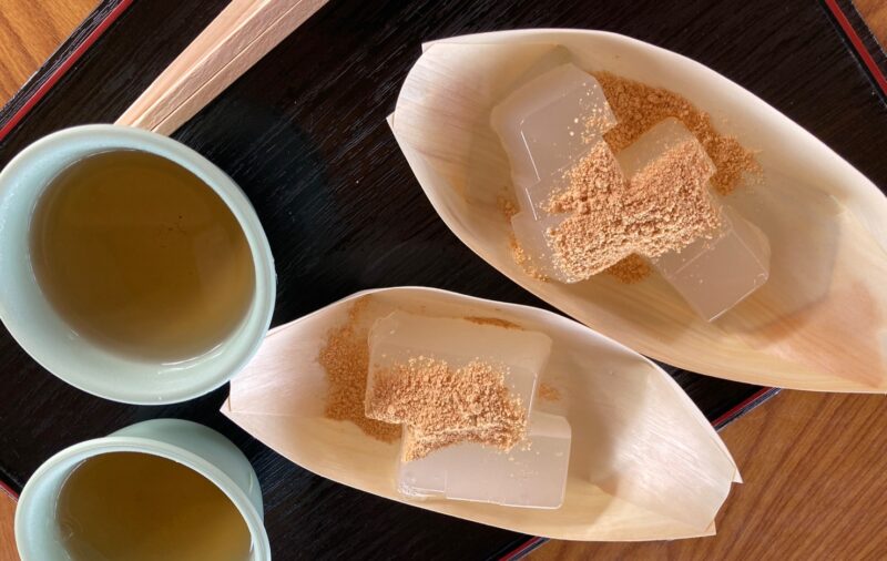 この場所は何かを購入しないと場所代を取られるため、夫が珍しく500円のわらび餅を奢ってくれました🍡。