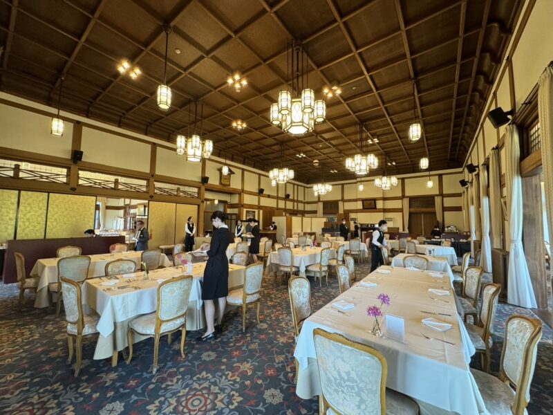 メインダイニングの雰囲気はまるで明治・大正時代にタイムスリップしたよう。