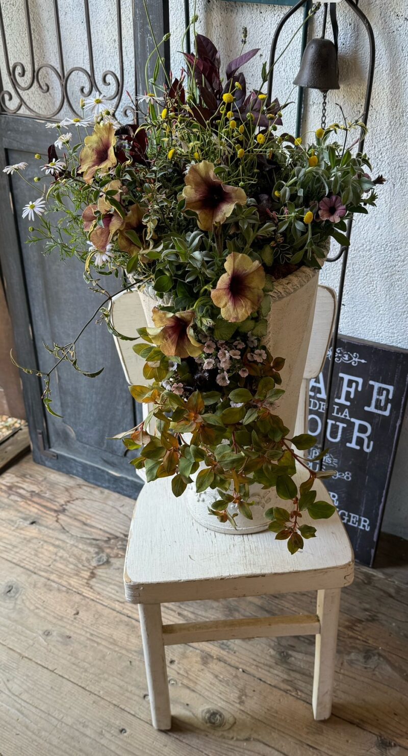 お友達も半額の鉢を選び、12ポットの花を使って、とてもシックでゴージャスなギャザリングを完成させました👌🎨。